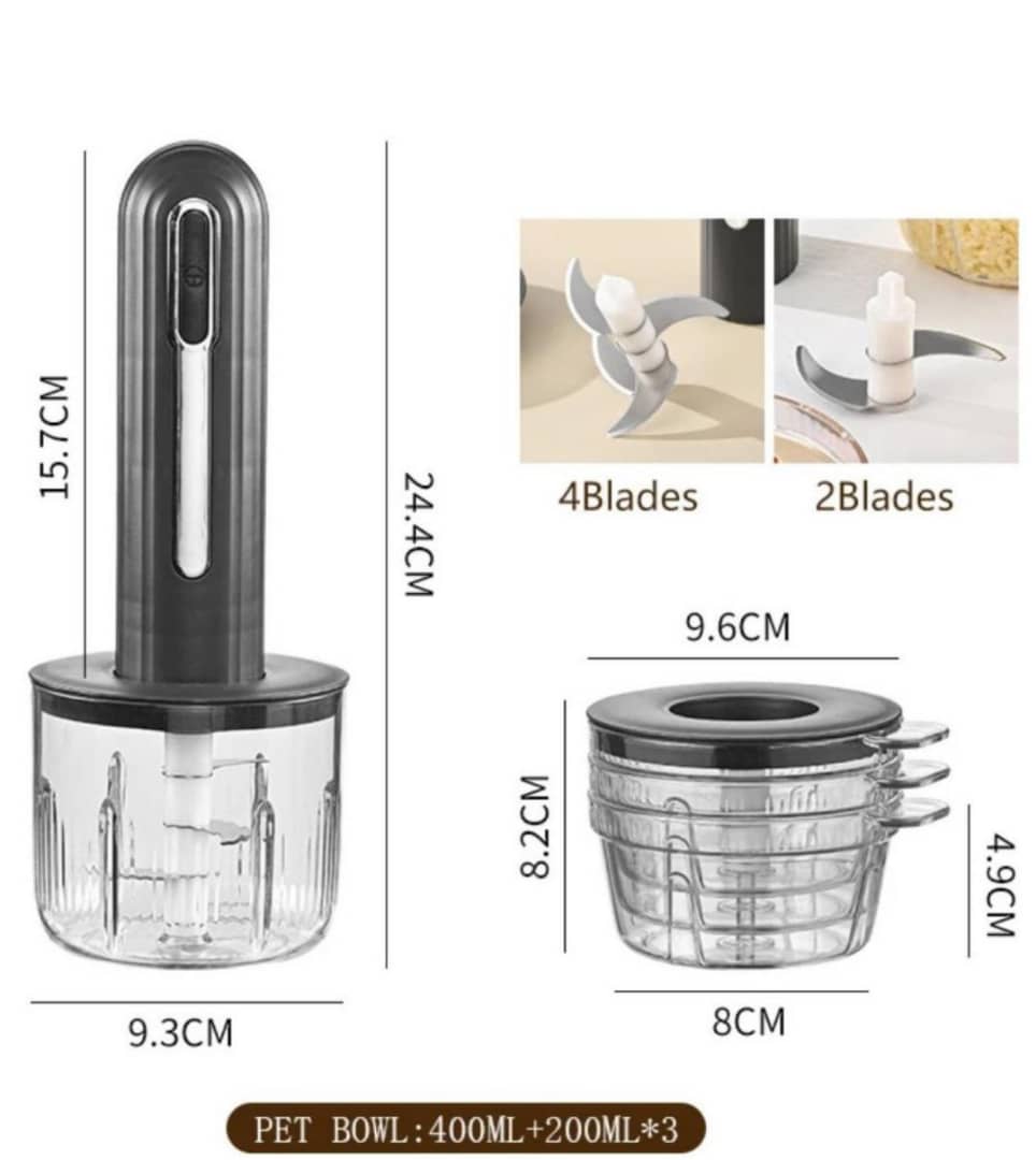 به لطف داشتن 4 ظرف خردکن با اندازههای گوناگون، شما میتوانید به راحتی مواد مختلف را بدون نیاز به شستشوی مداوم ظرف اصلی، خرد کنید. ظرف 400 میلیلیتری برای مواد حجیمتر و ظروف 200 میلیلیتری برای سیر، فلفل، یا تهیه چاشنیهای کوچک بسیار مناسب هستند.